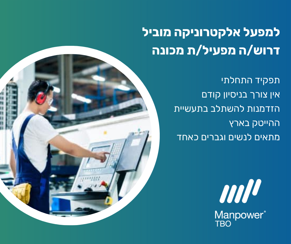 למפעל אלקטרוניקה מוביל בבאר שבע דרושים/ות מפעילי/ות מכונה – ללא ניסיון
